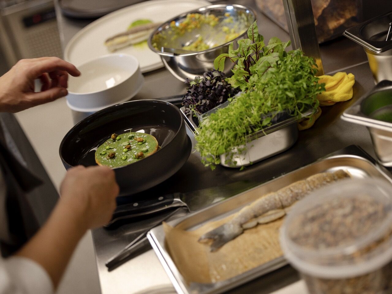 Papildoma rezidencijos ašis – 34 vietų restoranas, kurio meniu kūrė šefė Eglė Kaminskaitė. Jos dėka maistas tampa patirtimi ir pasakojimu – kiekvienas patiekalas primena ryšį su gamta, o tradicija įgauna naują, šiuolaikišką skambesį.