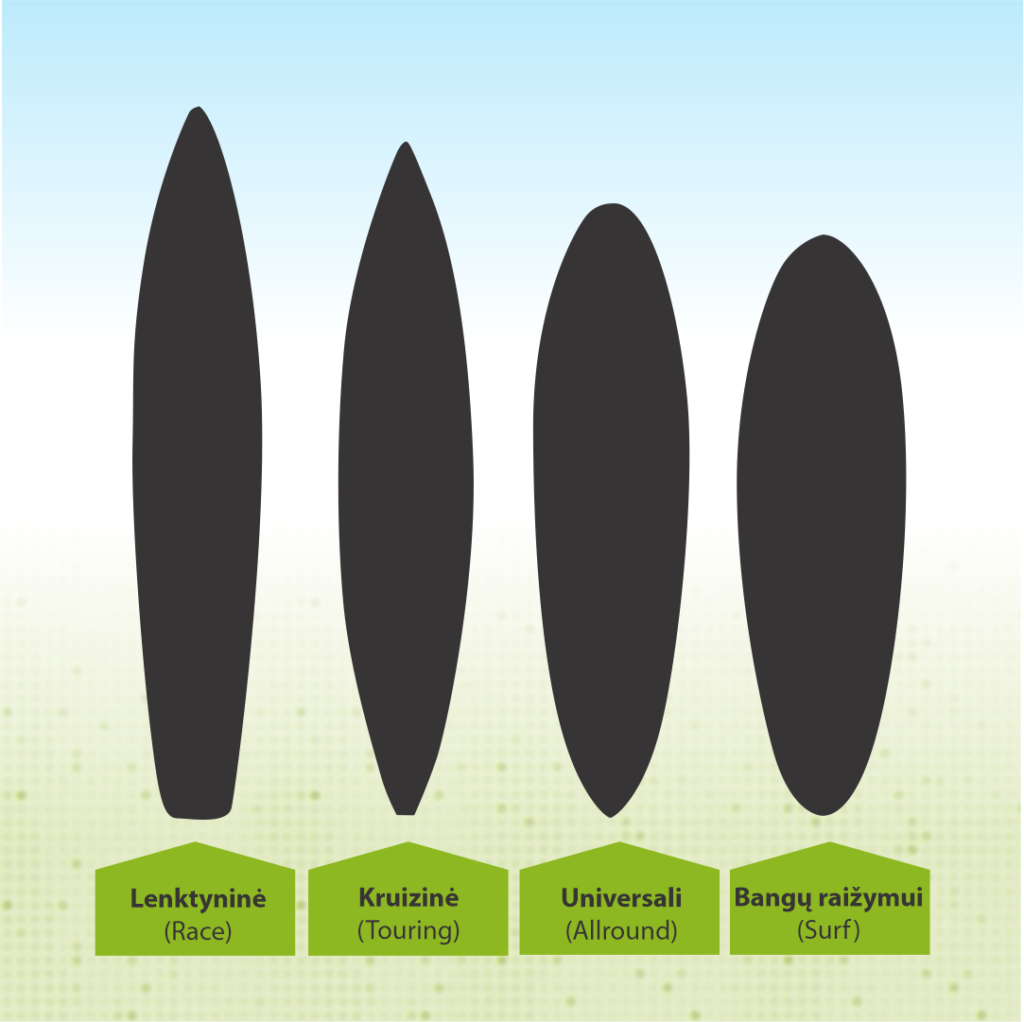 Pagal formą išskiriami tokie pagrindiniai SUP lentų tipai: