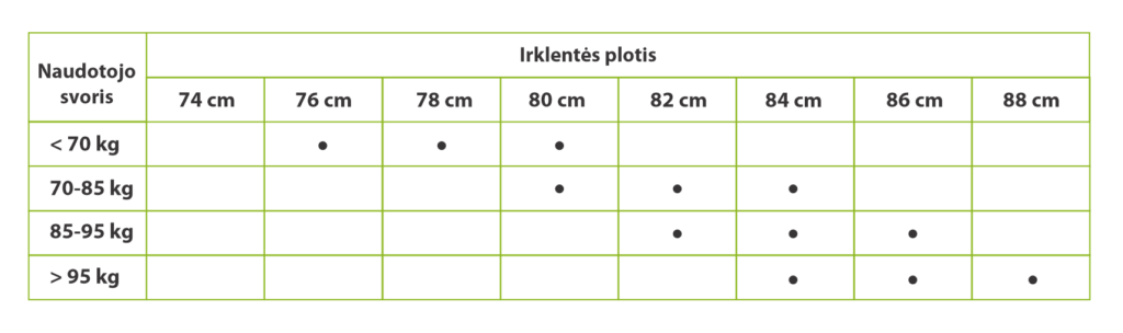 Renkantis irklentę, svarbu atkreipti dėmesį į naudotojo svorį bei irklentės dydį. Žemiau lentelėje pateikiami rekomenduojami saugūs irklentės pločio ir naudotojo svorio skaičiai: