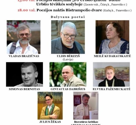 18 val. – įstabi poezijos naktis Bistrampolio dvare (Kučių k., Panevėžio r.). Dvare, kur kūrė žymusis Henrikas Senkevičius, skambės poezija.