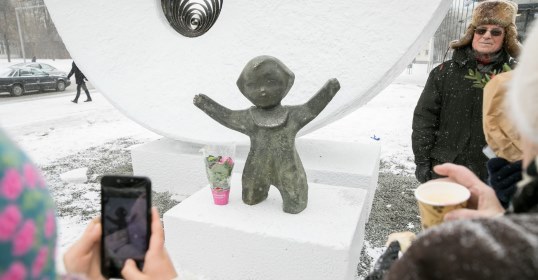 Žirmūnų simbolių tapusi skulptūra „Saulės džiaugsmas“ grįžo! Atnaujintą skulptūrą prie „Lidl“ parduotuvės Žirmūnų g. 67 šiandien iškilmingai atidengė žirmūniečiai kartu su skulptoriaus šeima, menininkų bendruomene, Vilniaus savivaldybės bei prekybos tinklo atstovai. Atnaujinant skulptūrą buvo ne tik išsaugotas meninis akcentas, bet ir atkurta jo autentiška kompozicija – šalia saulę simbolizuojančio rato ir vėl stovi vaiko figūrėlė.